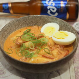 Jetzt wird’s wieder scharf, aber nicht so scharf wie in der ersten Woche.Rosé Tteokbokki hat durch die Kombination von Chili und Sahne ein etwas angenehmeres heat level.Meistens.Manchmal trotzdem zu scharf. Geschichte: Rosé Tteokbokki... Weiterlesen