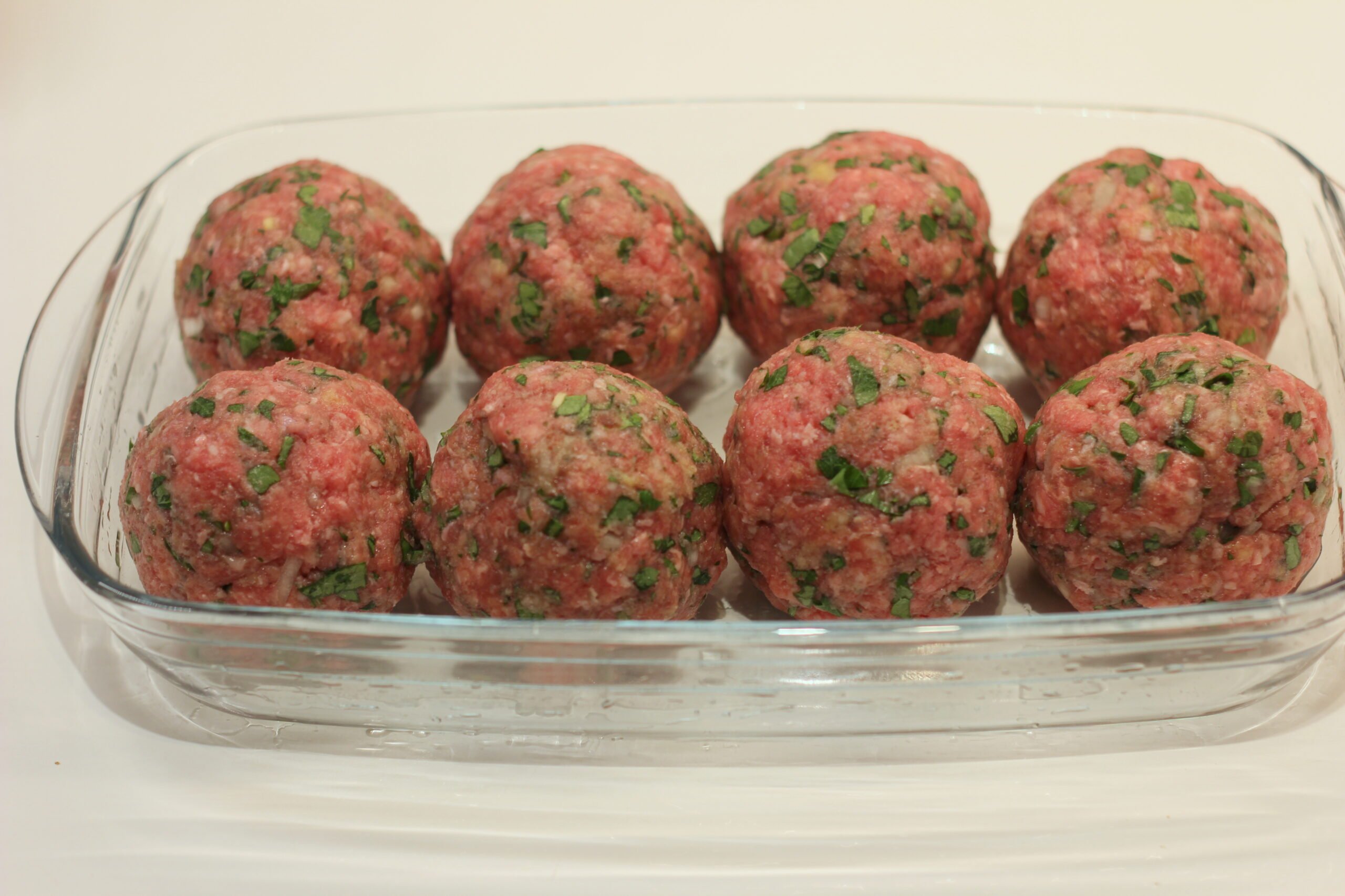 Mit nassen Händen 8 Kugeln formen und in eine leicht geölte Backform* legen.