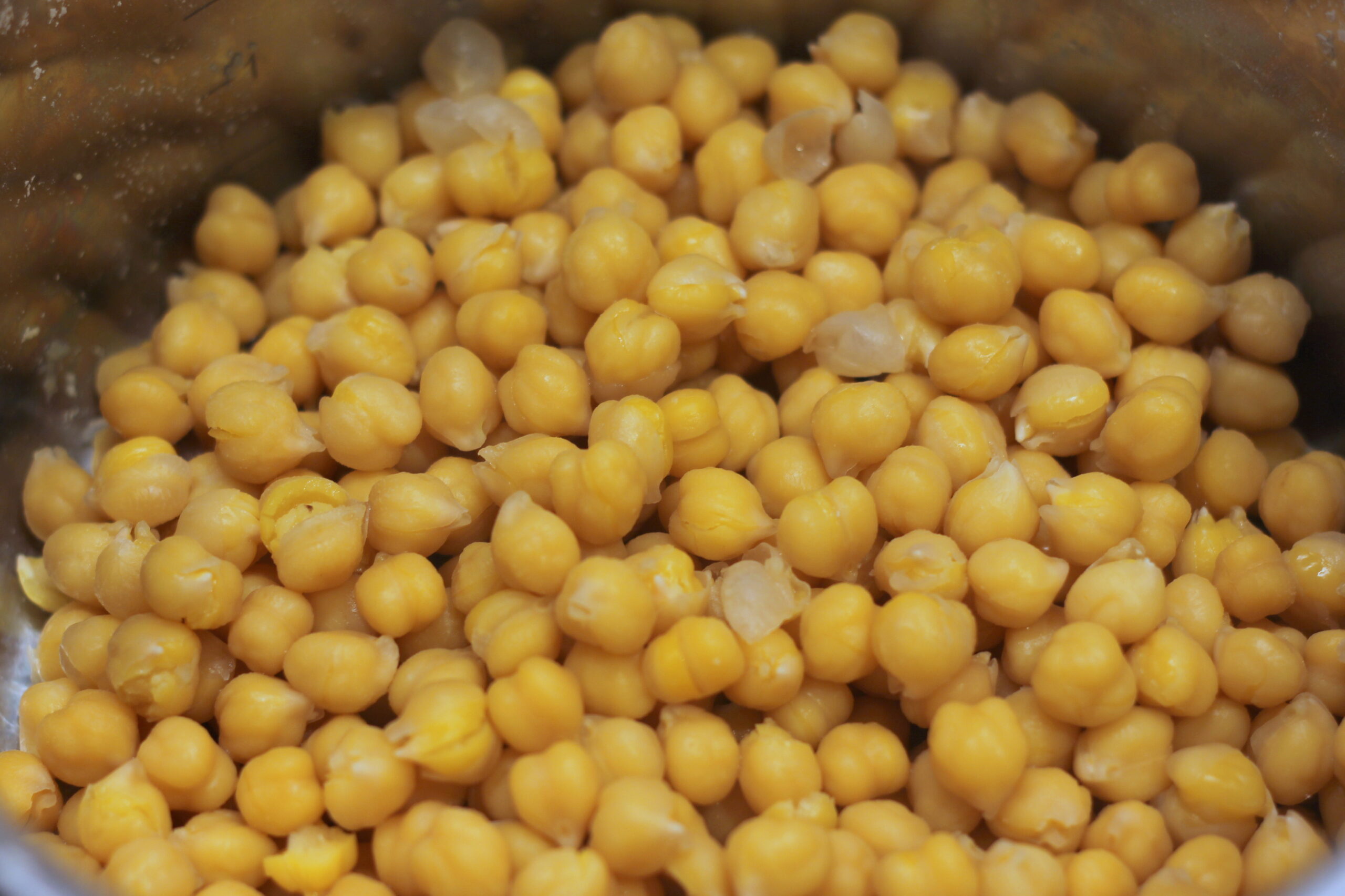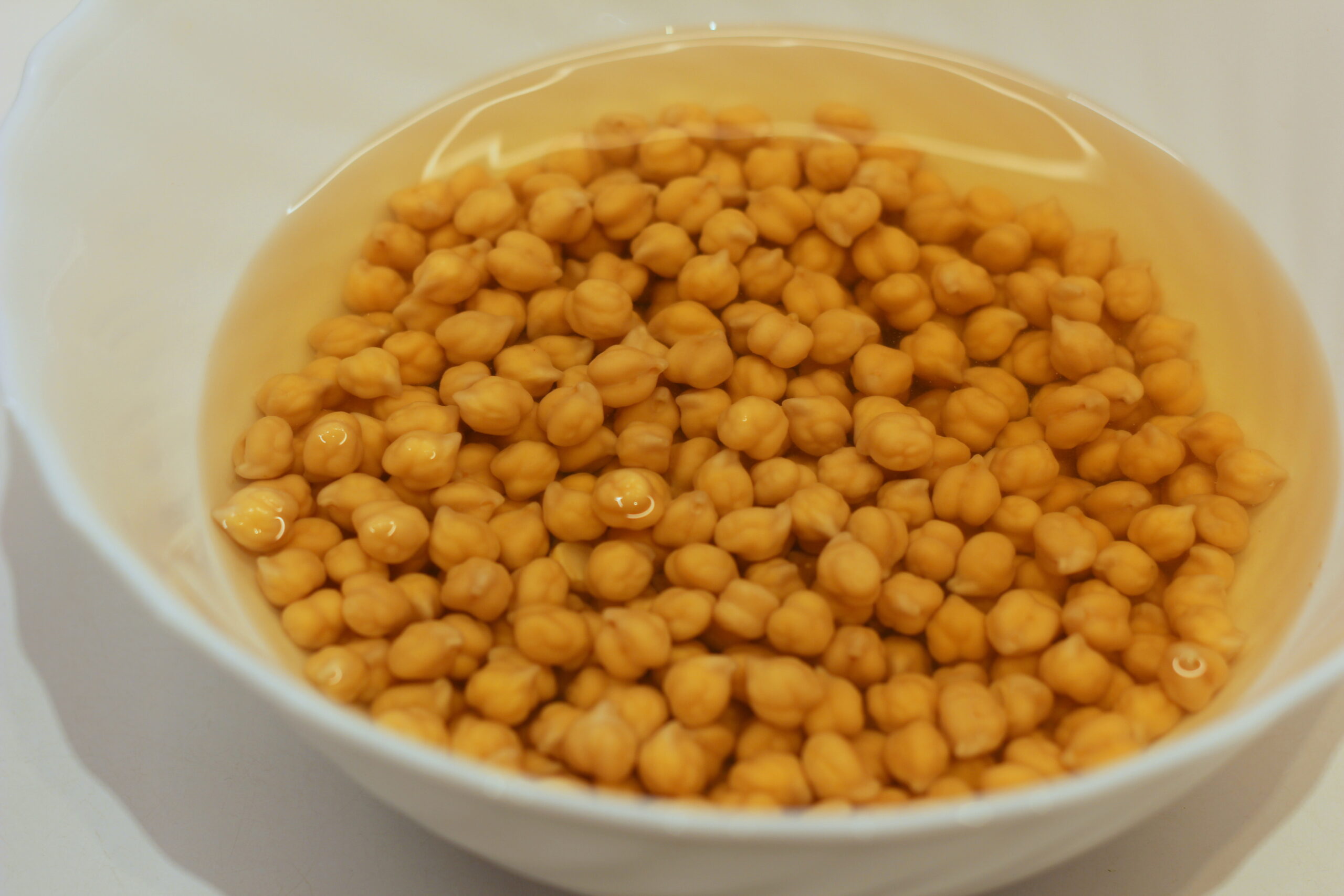 Die Kichererbsen über Nacht in kaltem Wasser einweichen. Dann in einem Topf* mit frischem Wasser und dem Natron wachsweich kochen.