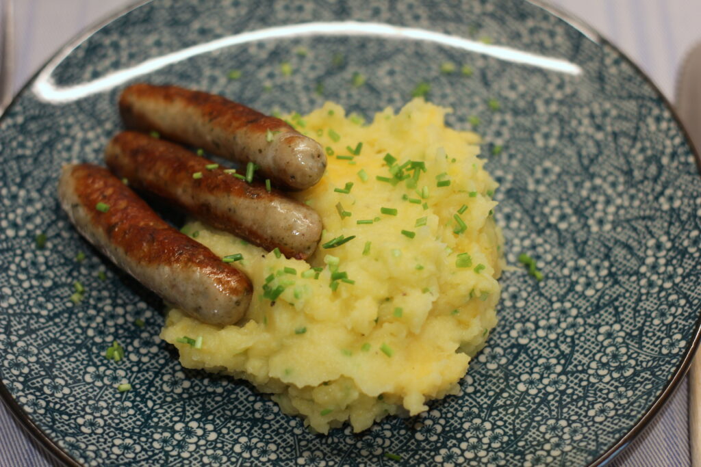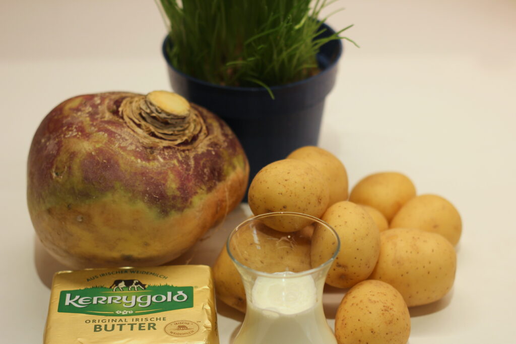 Ziemlich abgefahren für Kartoffelbrei. Obwohl es ja nicht einfach nur Kartoffelbrei ist. Da kommt ja auch noch Steckrübe rein.