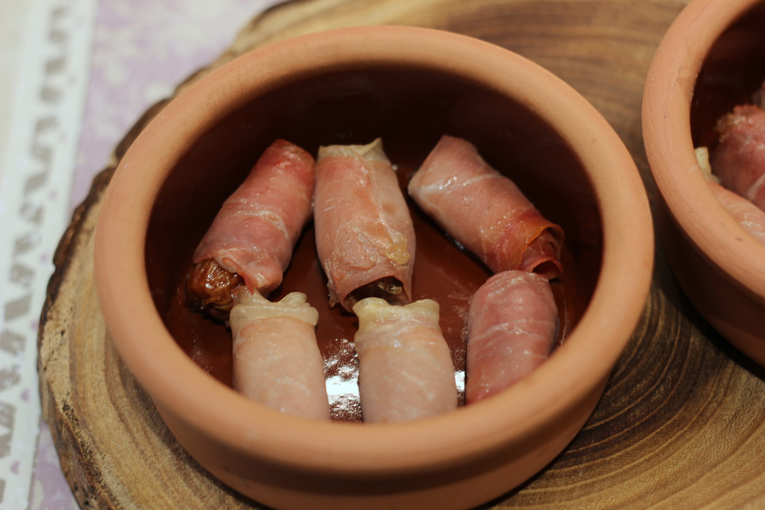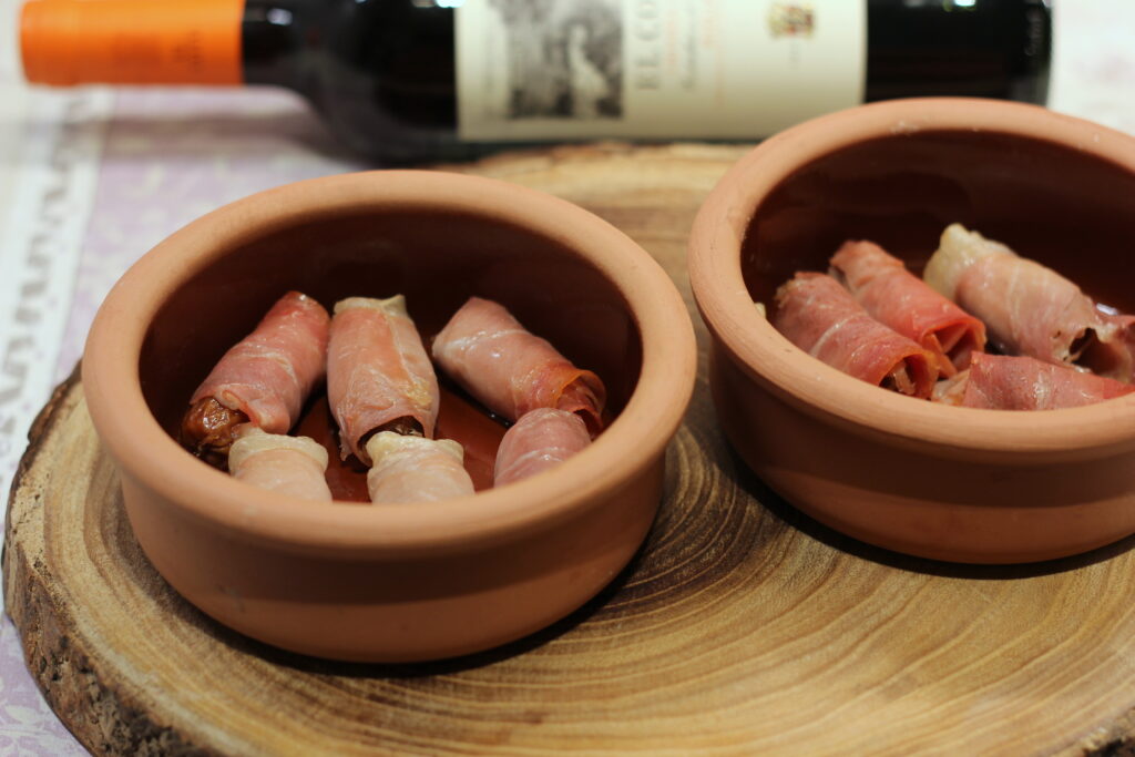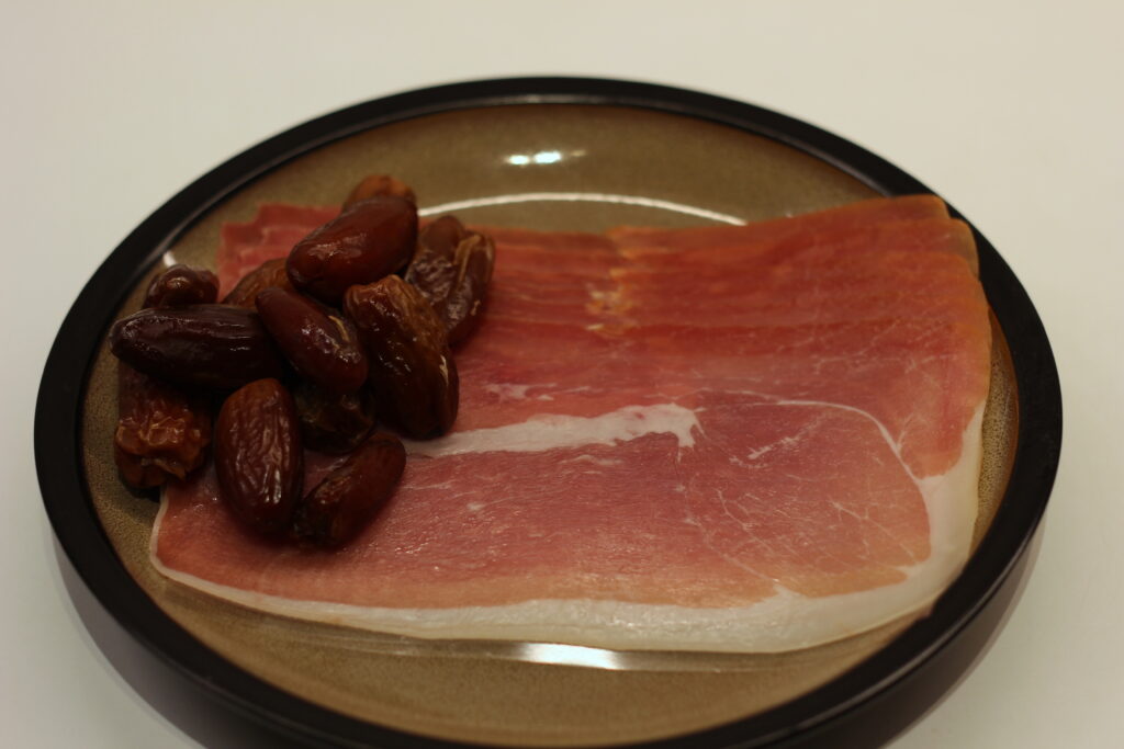Dátiles con Bacon ist Spanisch und bedeutet „Datteln mit Speck“.