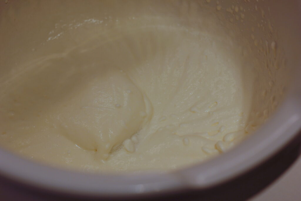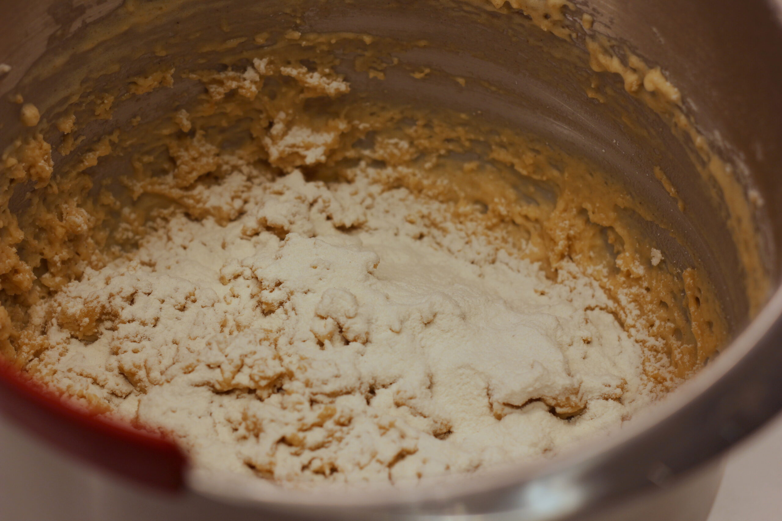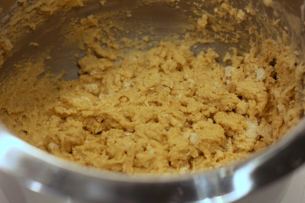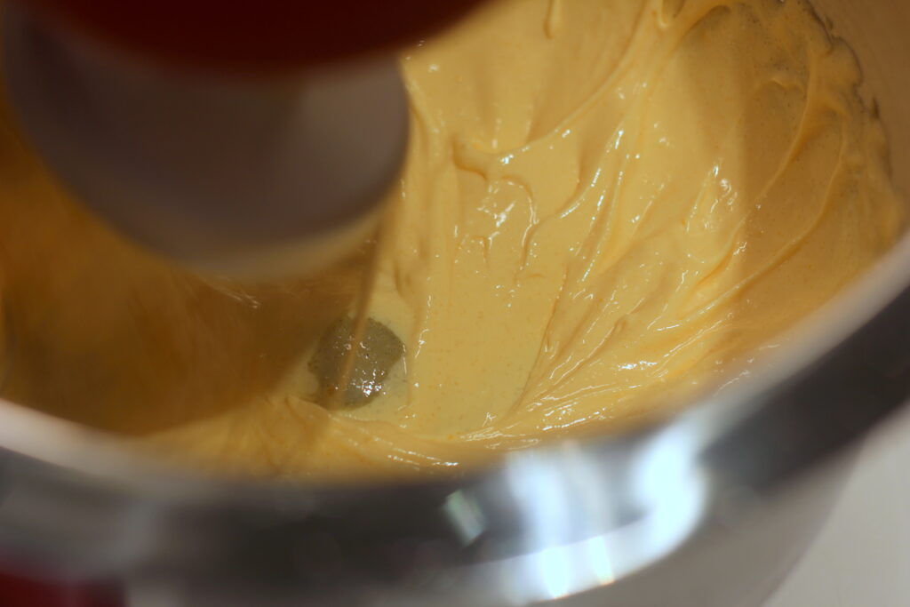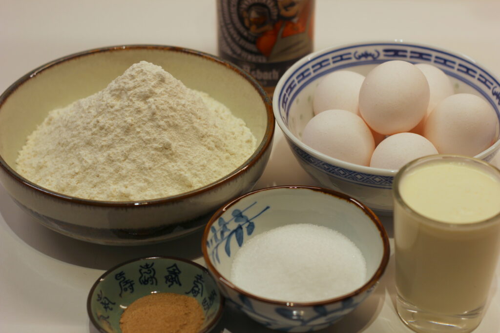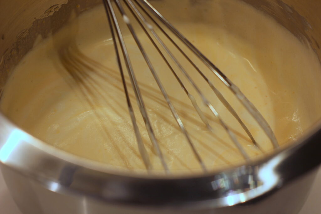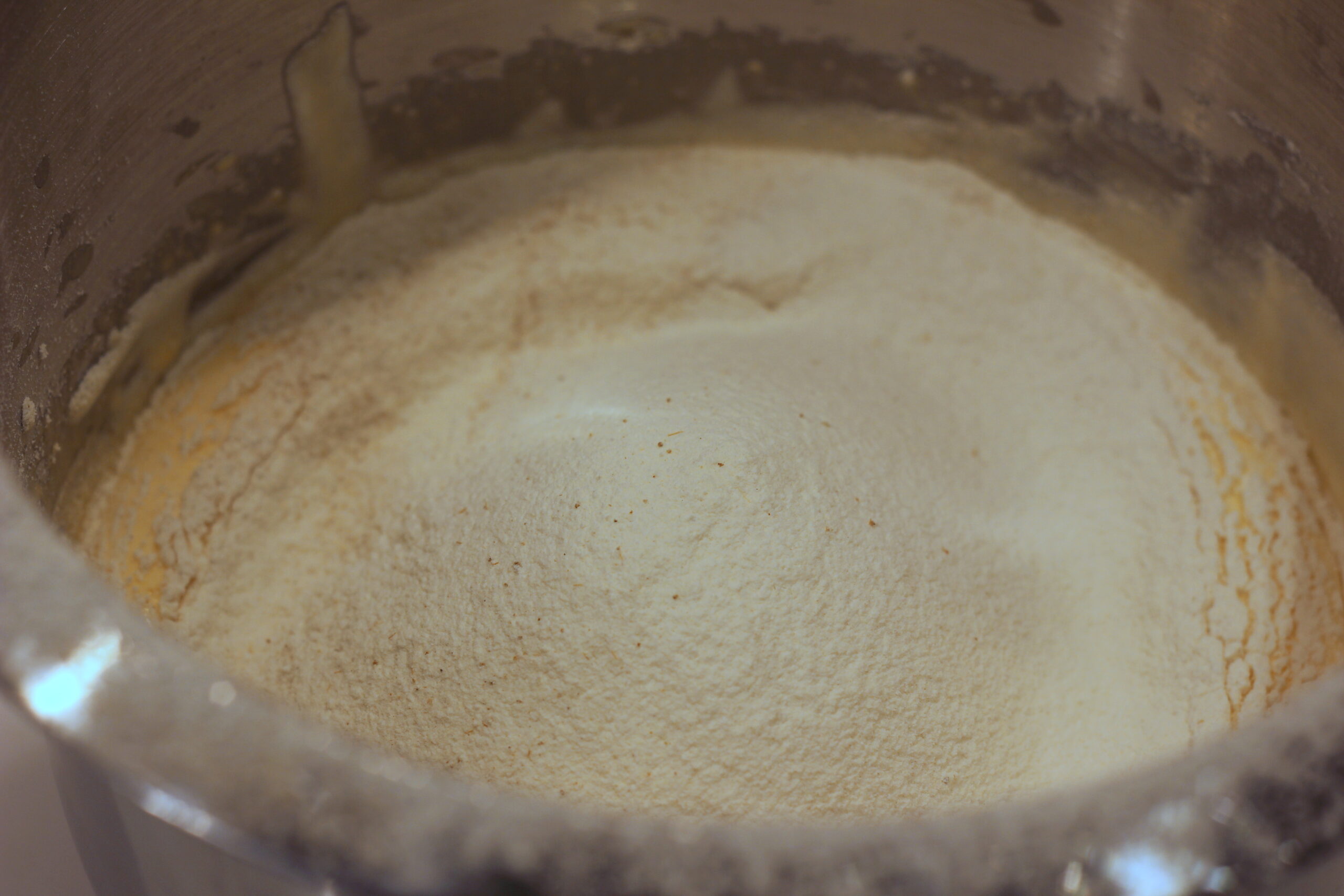 In einer weiteren Schüssel die Sahne steif schlagen und unter die Eimasse heben. Mehl und Kardamom darüber sieben und einarbeiten, dann die Oberfläche mit etwas weiterem Mehl bestreuen und abgedeckt über Nacht im Kühlschrank reifen lassen.