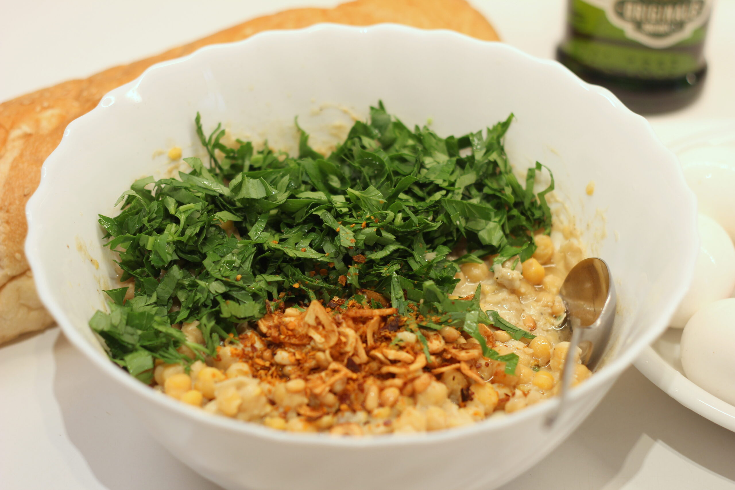 Zuerst Msabbaha, sowas wie stückiges Hummus.