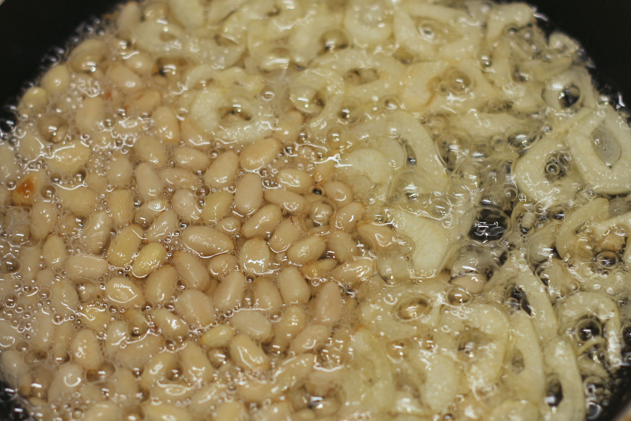 – lässt sich auch mit Kichererbsen aus der Dose zubereiten. Einfach abgießen und mit frischem Wasser erwärmen, dann fortfahren, als hätte man sie selbst gekocht.