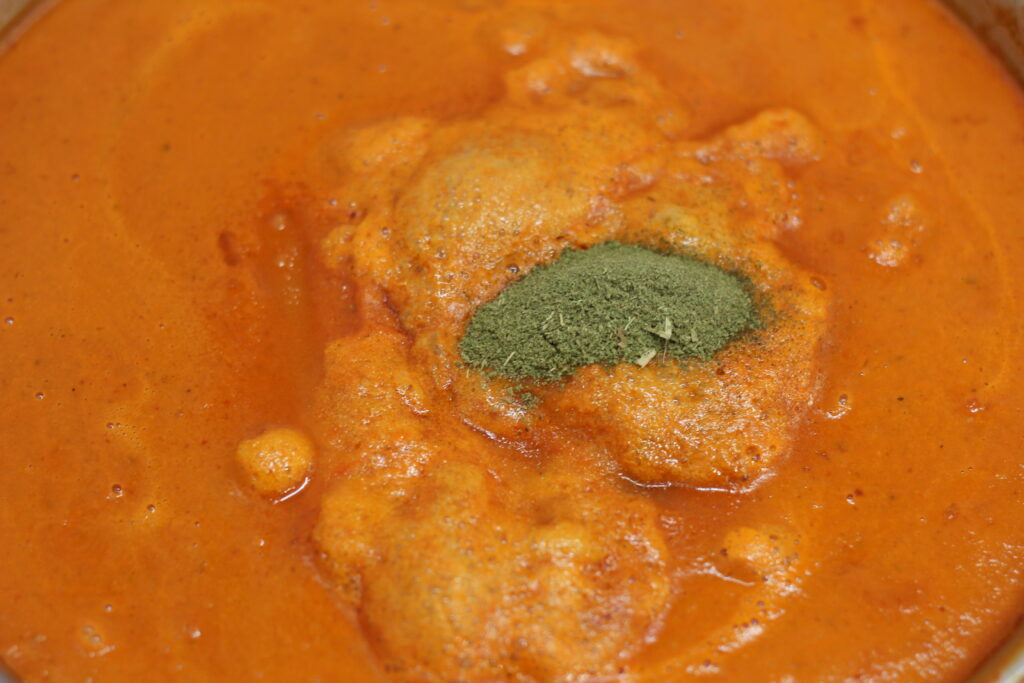 | 1 EL | Kasoori Methi, leicht angeröstet, zerrieben |