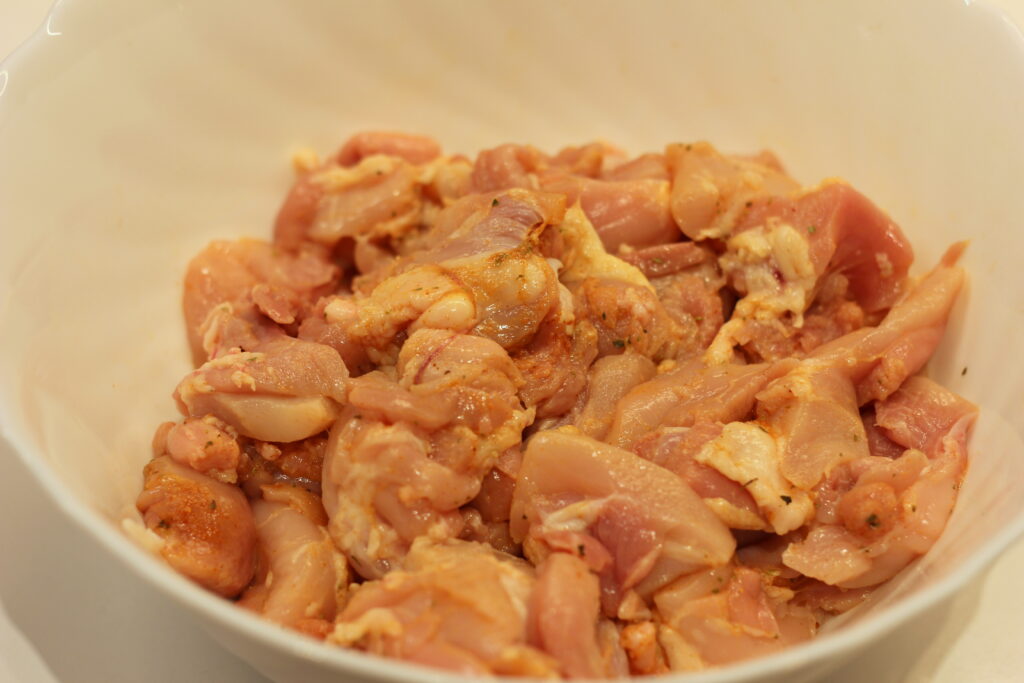 | 700 g | Hühnchenfleisch, in mundgerechten Stücken, Brust/Keule |