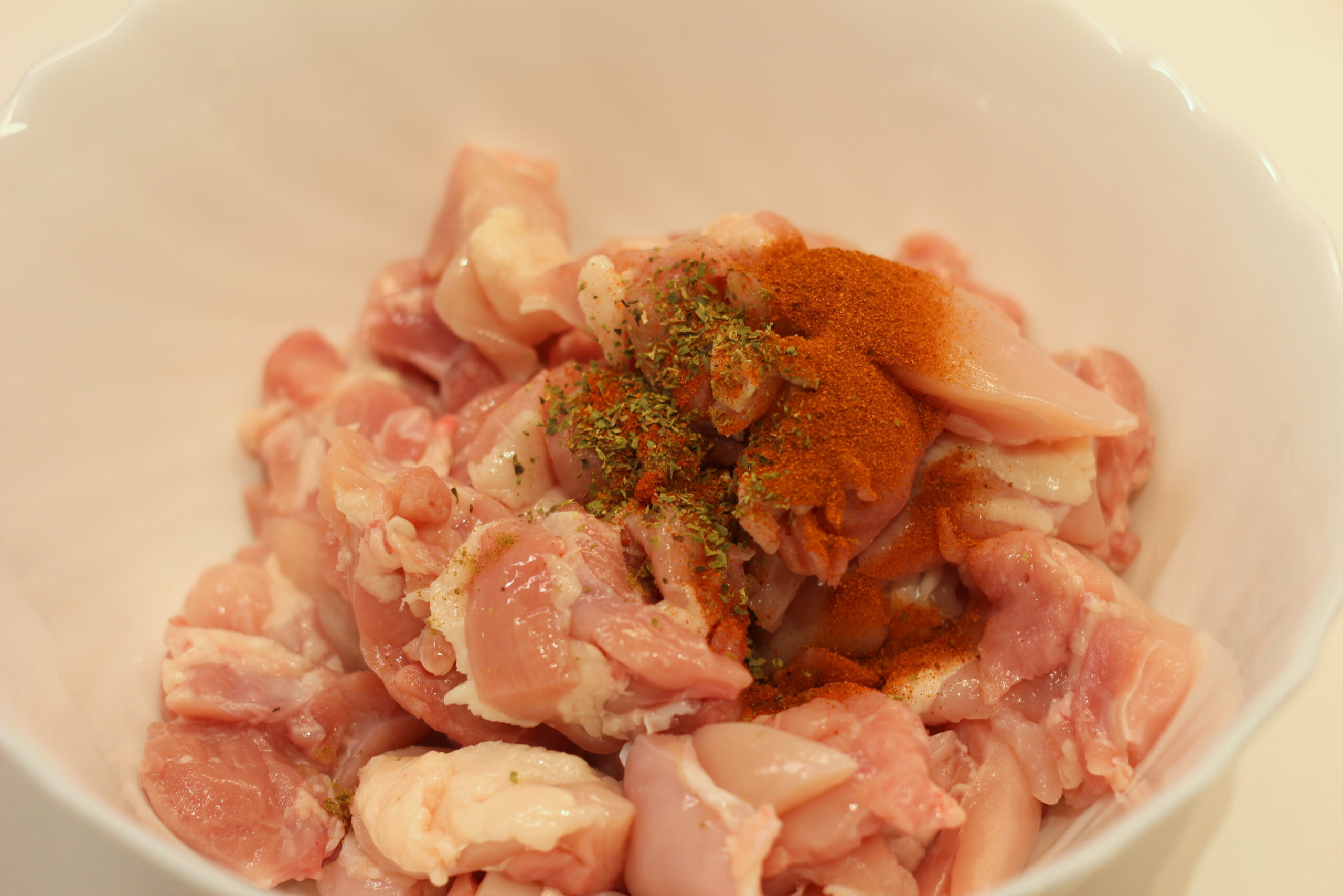 | 700 g | Hühnchenfleisch, in mundgerechten Stücken, Brust/Keule |