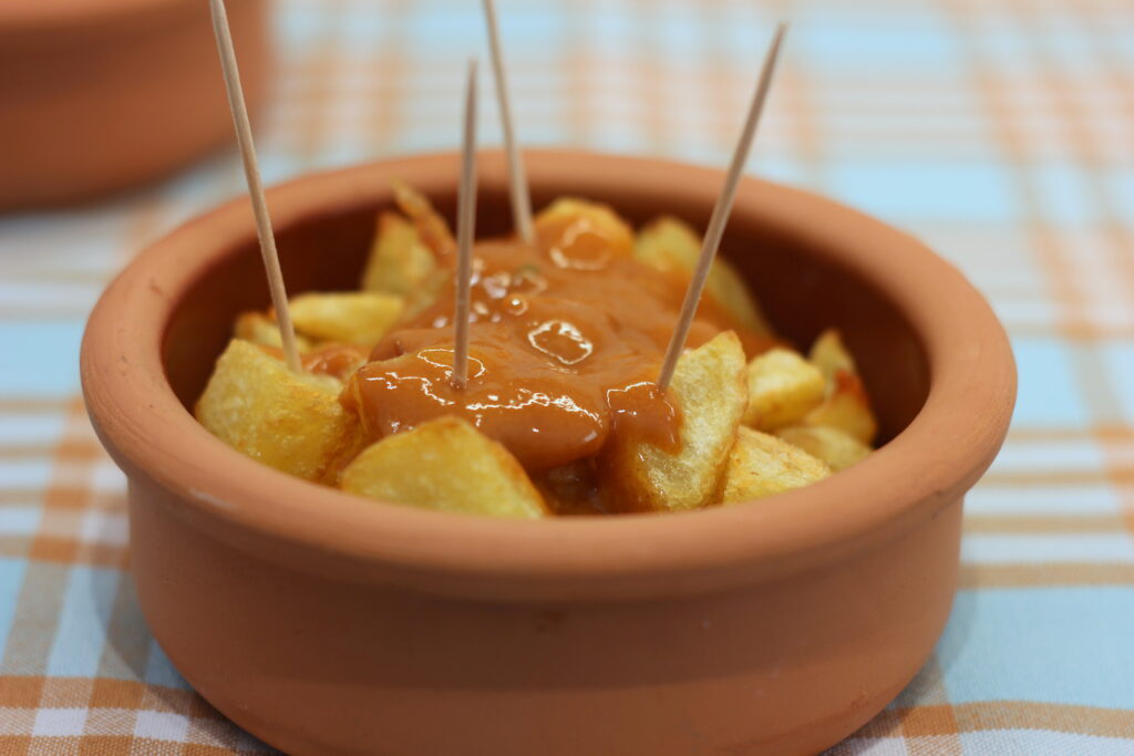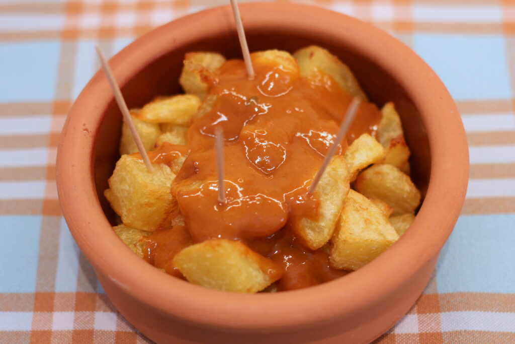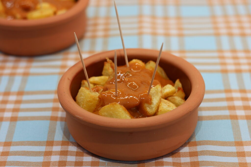 Patatas Bravas ist Spanisch und wird als „würzige Kartoffeln“ übersetzt, wobei brava verschiedene Bedeutungen hat wie „mutig“ oder „couragiert“, „geschickt“ oder „talentiert“ und „gut gemacht“.