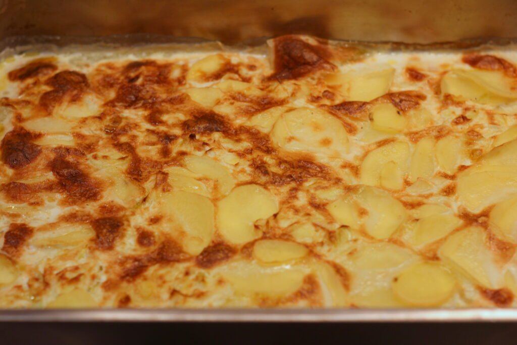 Im Backofen etwa 40 Minuten garen. Die Oberfläche sollte goldbraun werden und die Milch eindicken.