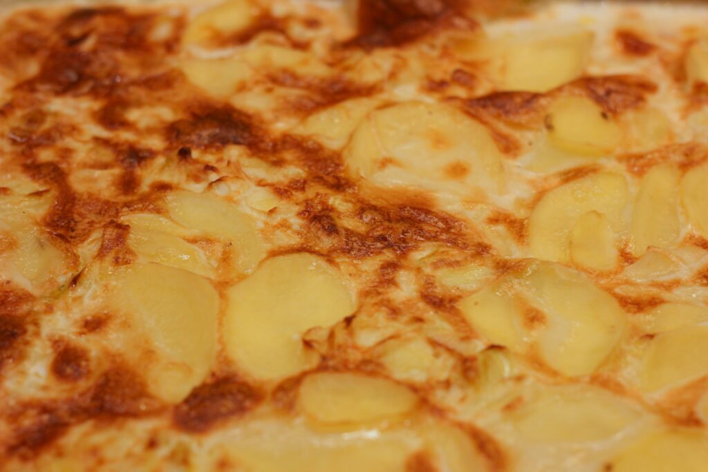 Im Backofen etwa 40 Minuten garen. Die Oberfläche sollte goldbraun werden und die Milch eindicken.