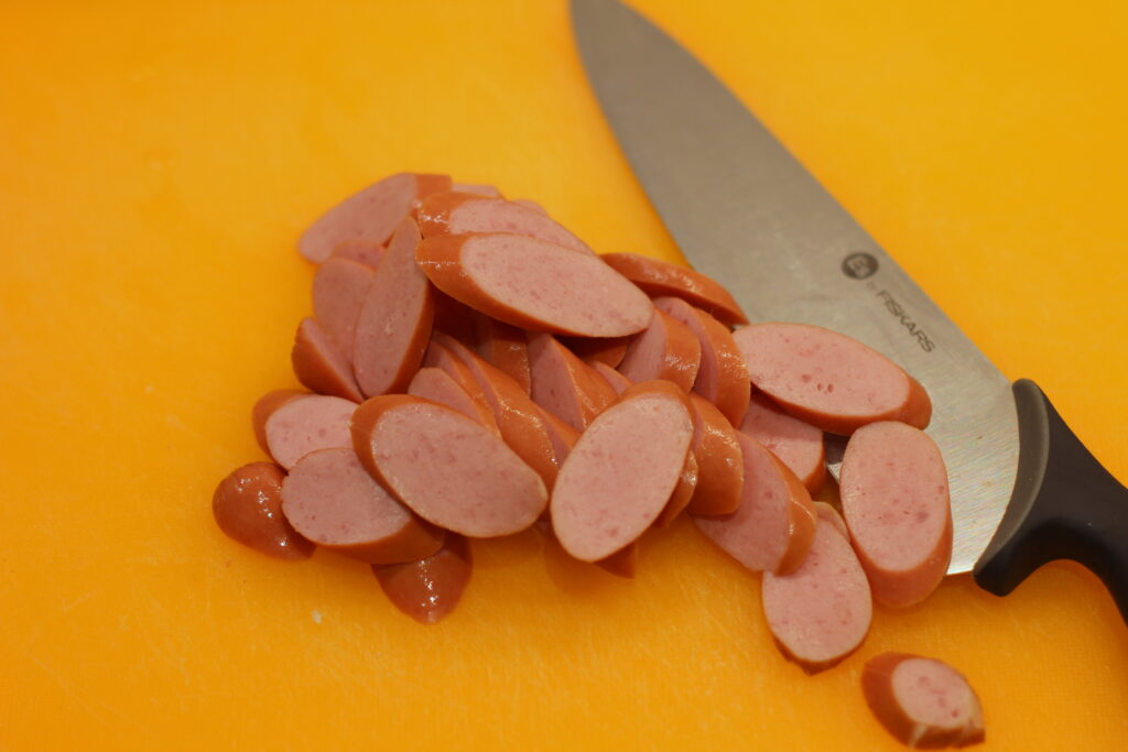 | 2 | HotDog*-/Wiener-Würstchen, diagonal in Scheiben geschnitten |