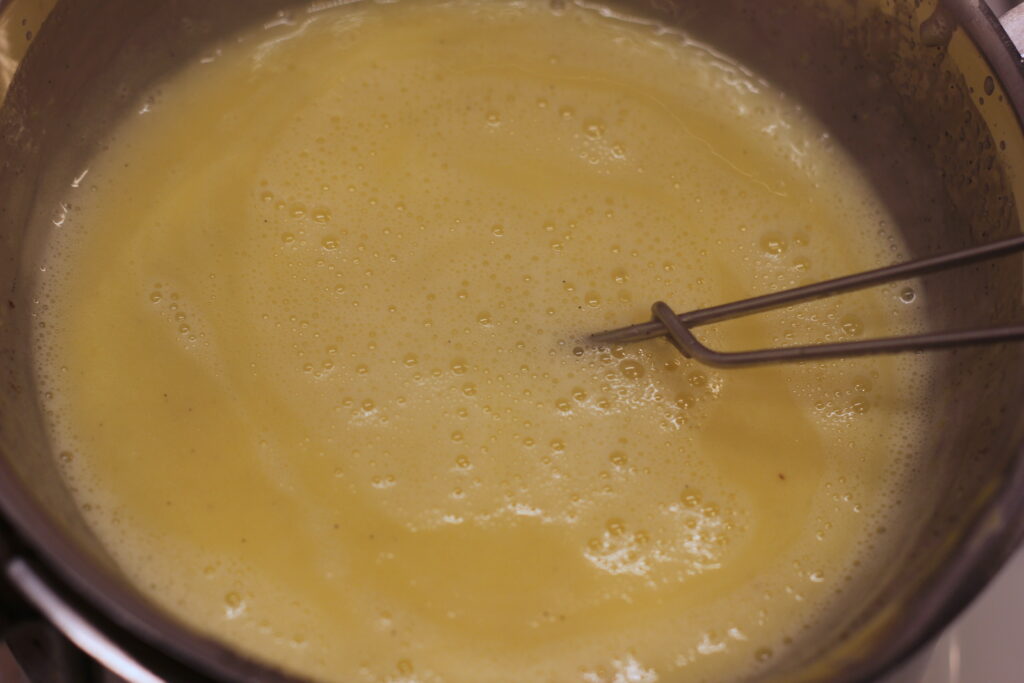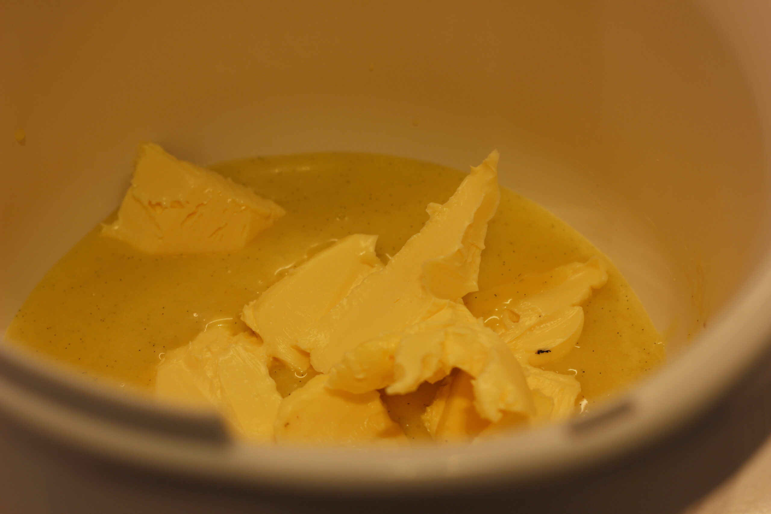 Die abgekühlte Creme auf den abgekühlten Boden geben und verstreichen.