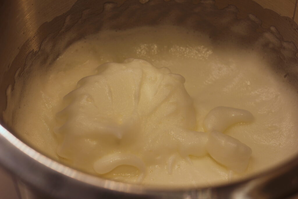 In der Küchenmaschine die Creme mit der Butter etwa eine Minute aufschlagen.
