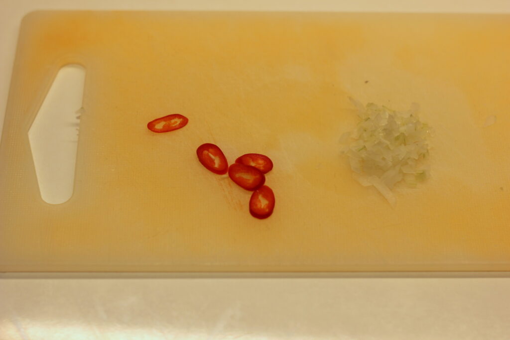 wenige ScheibenChili, fein geschnitten